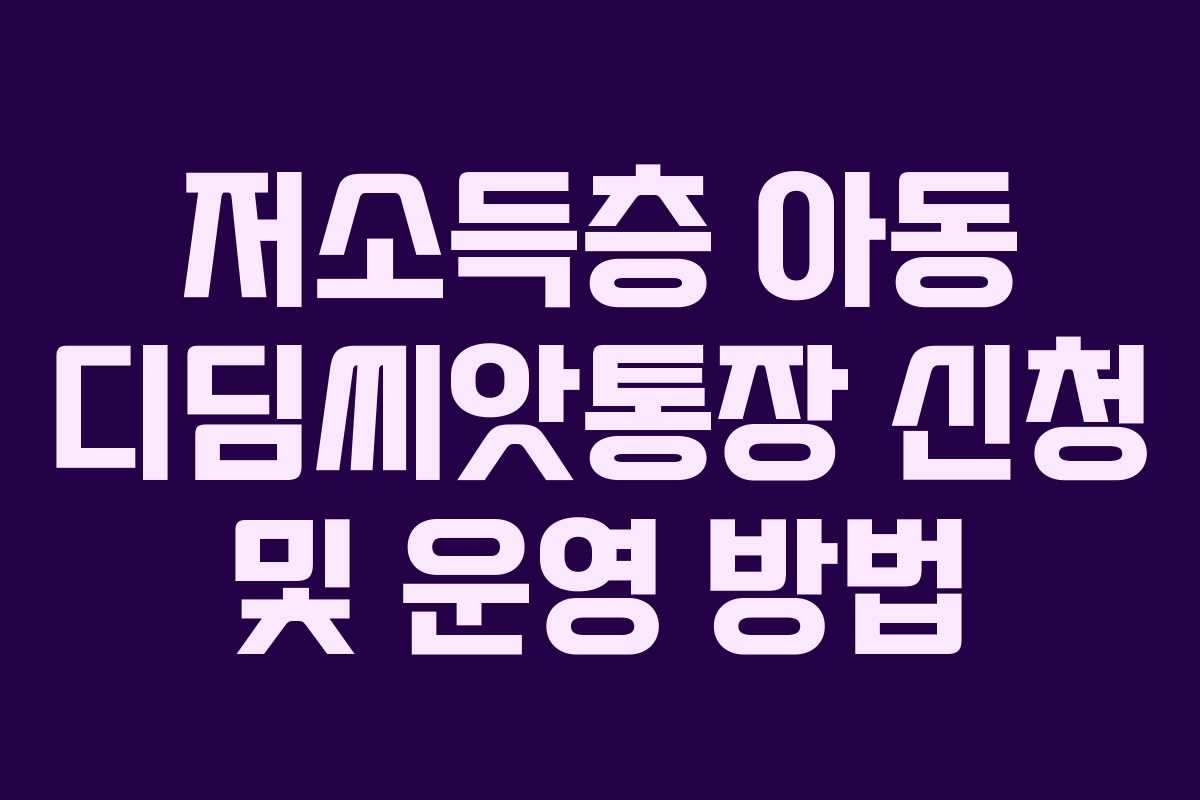 저소득층 아동 디딤씨앗통장 신청 및 운영 방법