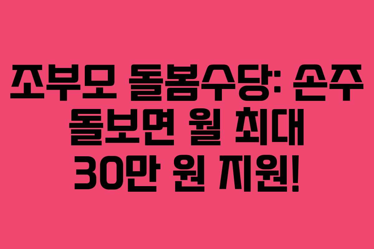 조부모 돌봄수당은 보통 월 30만 원 한도로 지원되며, 아동 1명 기준입니다. 돌봄 시간은 월 40시간 이상이어야 하며, 하루 최대 4시간으로 제한될 수 있습니다.