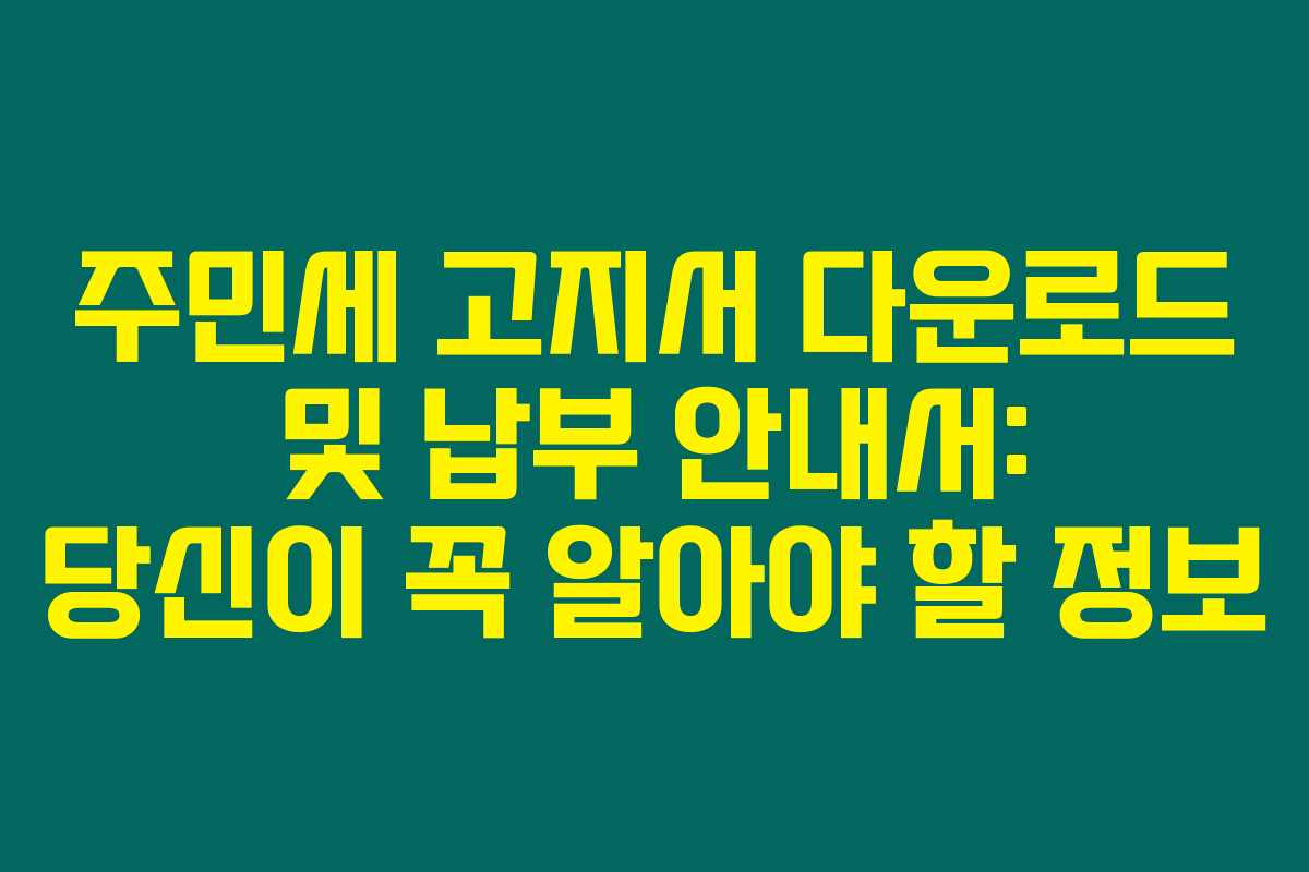 주민세를 납부해야 하는 기한이 다가오고 있어요. 주민세 고지서를 어떻게 다운로드하고 납부하는지 궁금하신가요? 아래를 읽어보시면 주민세 고지서 다운로드 및 납부에 대한 필수 정보를 확인할 수 있을 거에요.
