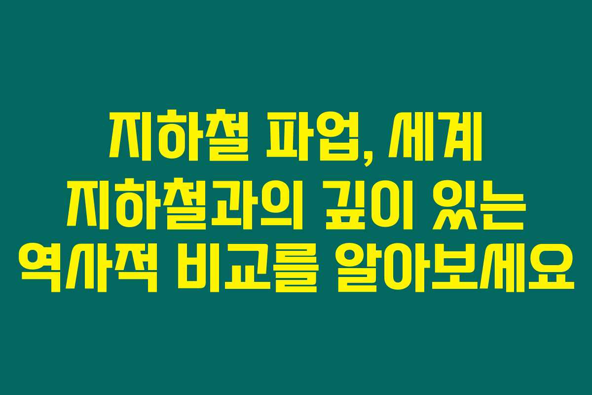 지하철 파업에 대해 고민하고 있거나 정보가 필요하다면 아래를 읽어보세요. 서울의 지하철 파업은 단순한 교통사의 문제를 넘어서, 도시의 운명과 시민 삶에 막대한 영향을 미칠 수 있습니다. 그렇다면 서울 지하철은 어떤 역사적 배경을 가지고 있으며, 세계 지하철 시스템과는 어떻게 비교될 수 있을까요?
