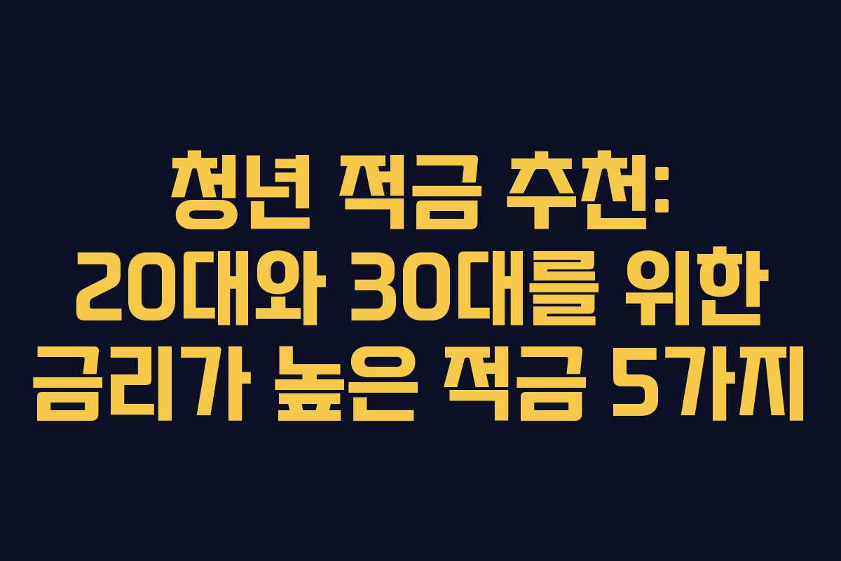 재테크의 한 방법으로 청년 적금은 안정적인 자산 형성에 도움을 줄 수 있습니다. 이번 글에서는 20대와 30대에게 추천할 만한 금리가 높은 청년 적금 상품 5가지를 소개합니다.
