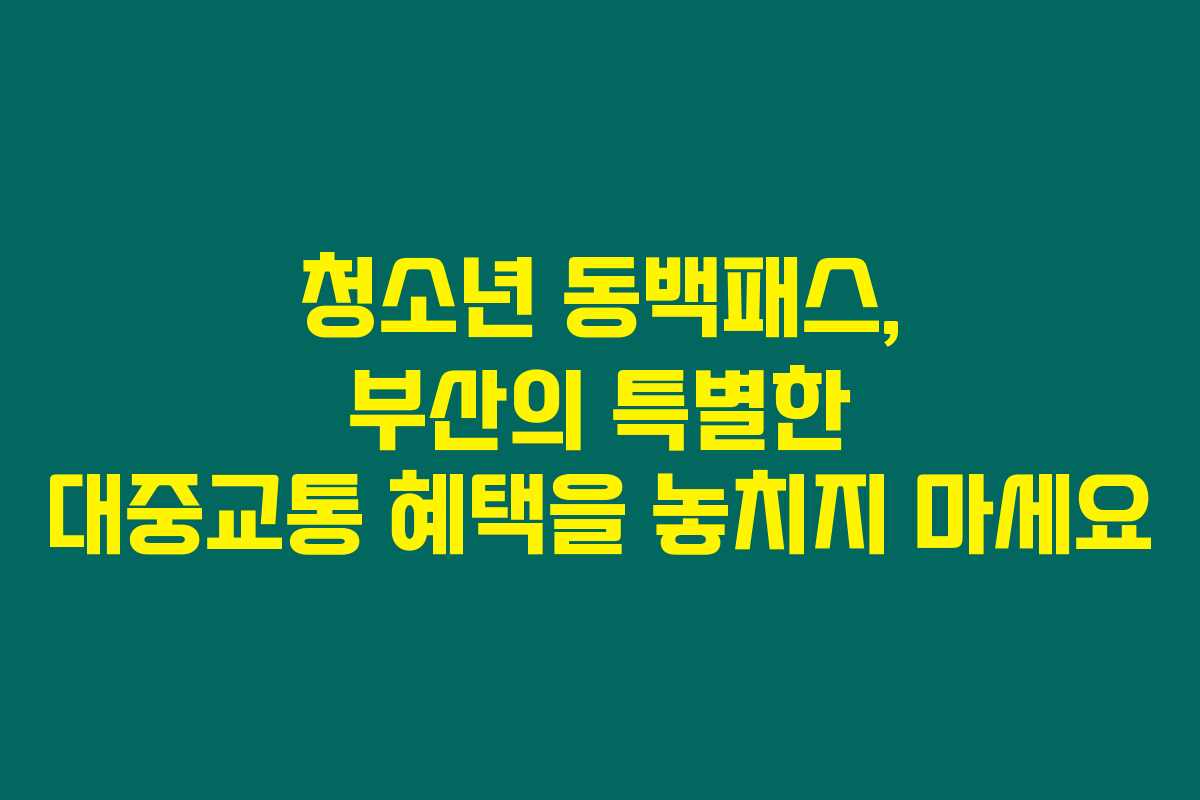 부산에 살고 계신 청소년이라면 청소년 동백패스를 아시나요? 이 패스는 교통비 부담을 덜어주는 좋은 기회예요. 청소년들이 대중교통을 자주 이용하는 만큼, 이 혜택을 놓치는 건 정말 아쉬울 거예요. 아래를 읽어보시면 청소년 동백패스의 모든 것을 쉽게 이해하실 수 있습니다.