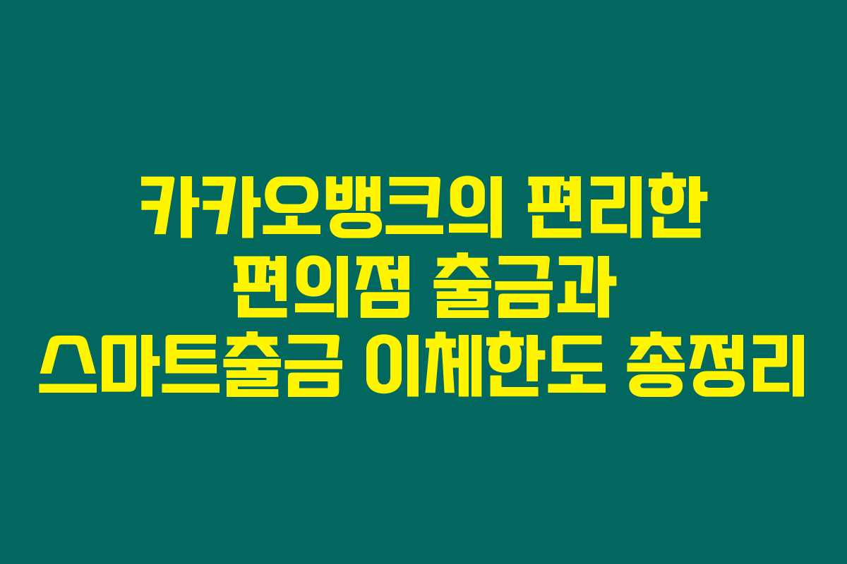 전국의 편의점에서 언제 어디서나 카카오뱅크를 이용해 출금을 할 수 있는 기회는 정말 유용하지요. 하지만 구체적인 출금 방법이나 이체 한도를 제대로 알지 못하는 분들도 많답니다. 아래를 읽어보시면 카카오뱅크의 편의점 출금 방식과 스마트출금 이체한도에 대한 모든 정보를 자세히 확인할 수 있어요!