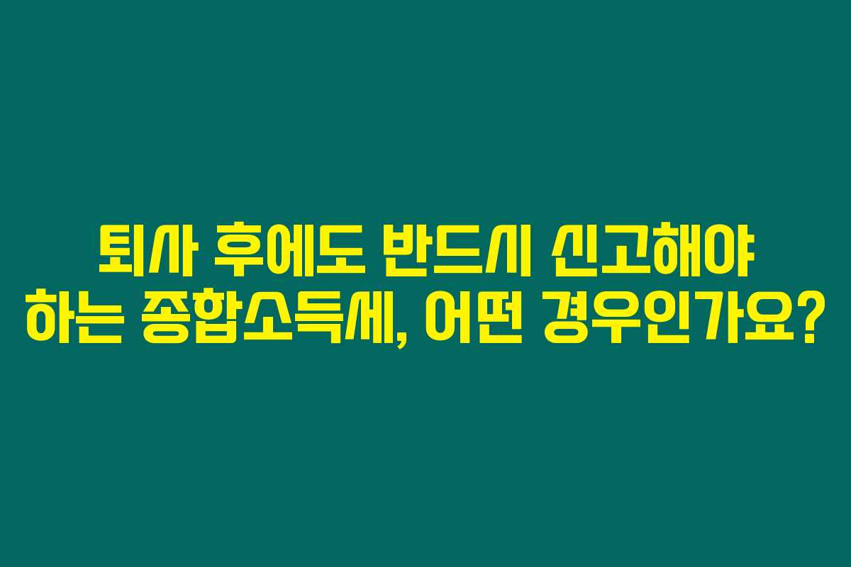 퇴사 후에 모든 세금 의무가 끝나는 것은 아니에요. 많은 분들이 “이제 근로소득이 없으니 세금 신고는 끝났다”라고 생각하시곤 하는데, 그런 생각은 일종의 오해랍니다. 만약 연말정산을 하지 않고 퇴사했다거나, 퇴사 후 프리랜서나 일용직으로 수입을 얻었다면 반드시 종합소득세 신고를 해야 해요.