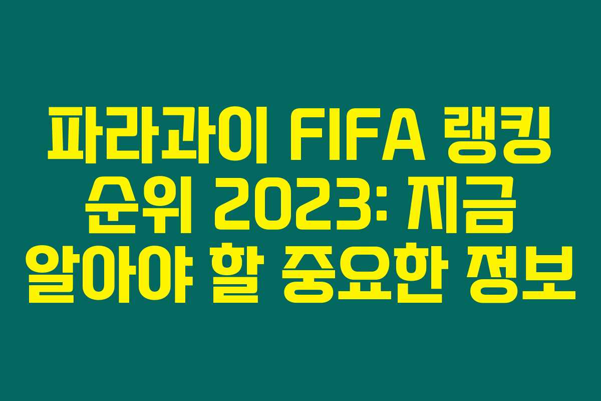 여러분은 파라과이의 축구 실력과 FIFA 랭킹에서의 위치가 궁금하신가요? 파라과이 국가대표팀은 최근 몇 년 동안 여러 어려움을 겪으며 피파랭킹이 하락해왔는데요. 이 글에서는 최신의 파라과이 FIFA 랭킹 순위를 알아보고 팀이 어떤 변화에 직면하고 있는지, 그리고 앞으로 기대할 수 있는 내용들을 포괄적으로 다뤄보겠습니다.