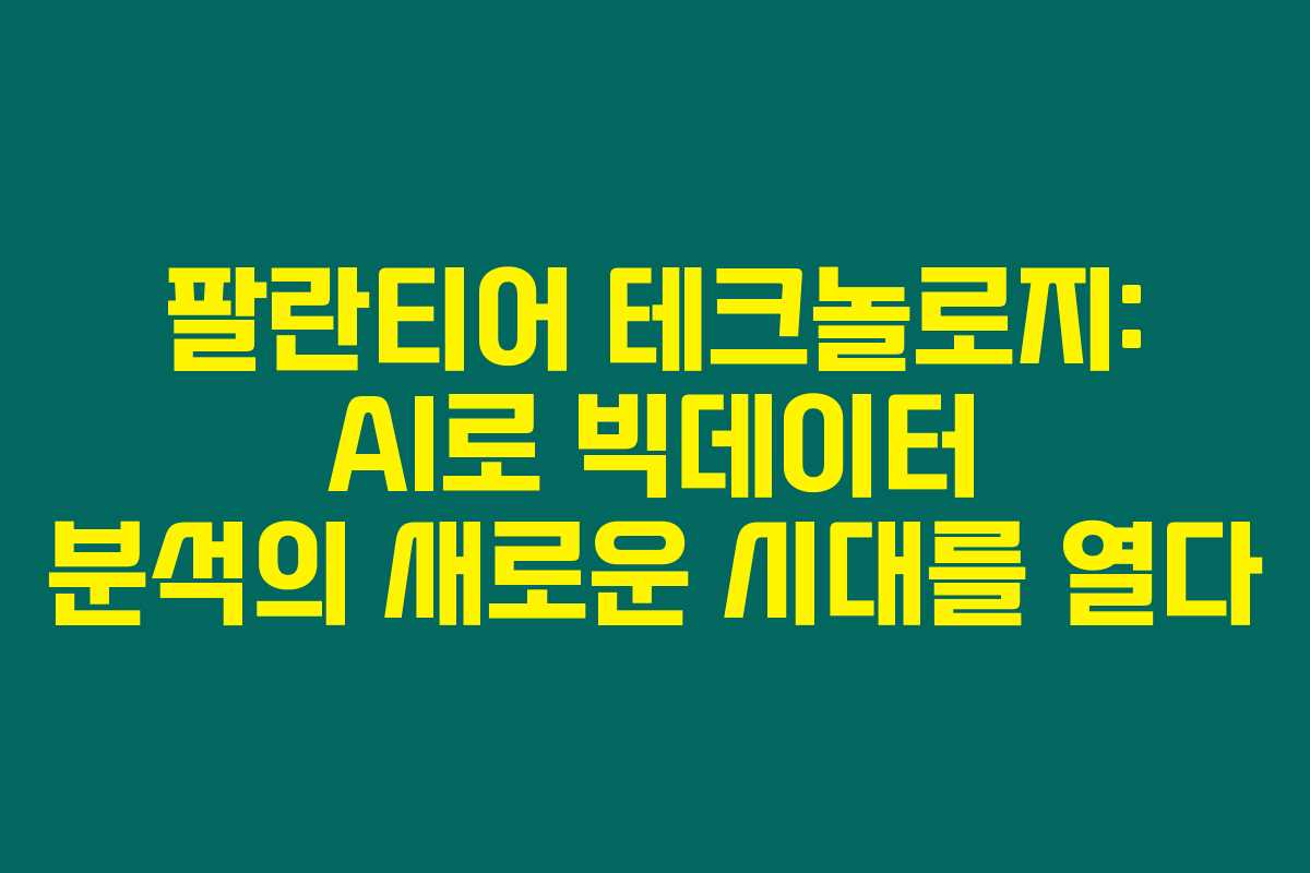 팔란티어 테크놀로지: AI로 빅데이터 분석의 새로운 시대를 열다