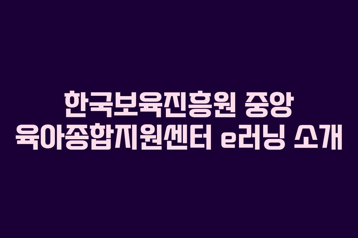 더 자세한 정보는 한국보육진흥원 중앙 육아종합지원센터 e러닝의 공식 홈페이지에서 확인할 수 있습니다. 필요한 교육을 신속하게 신청하여 보육의 질 향상에 기여하시기 바랍니다.