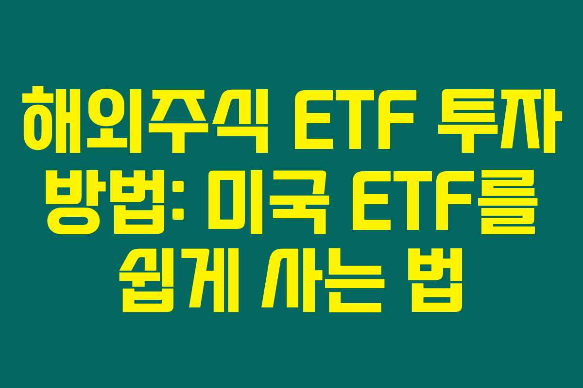 해외주식 ETF 투자 방법: 미국 ETF를 쉽게 사는 법