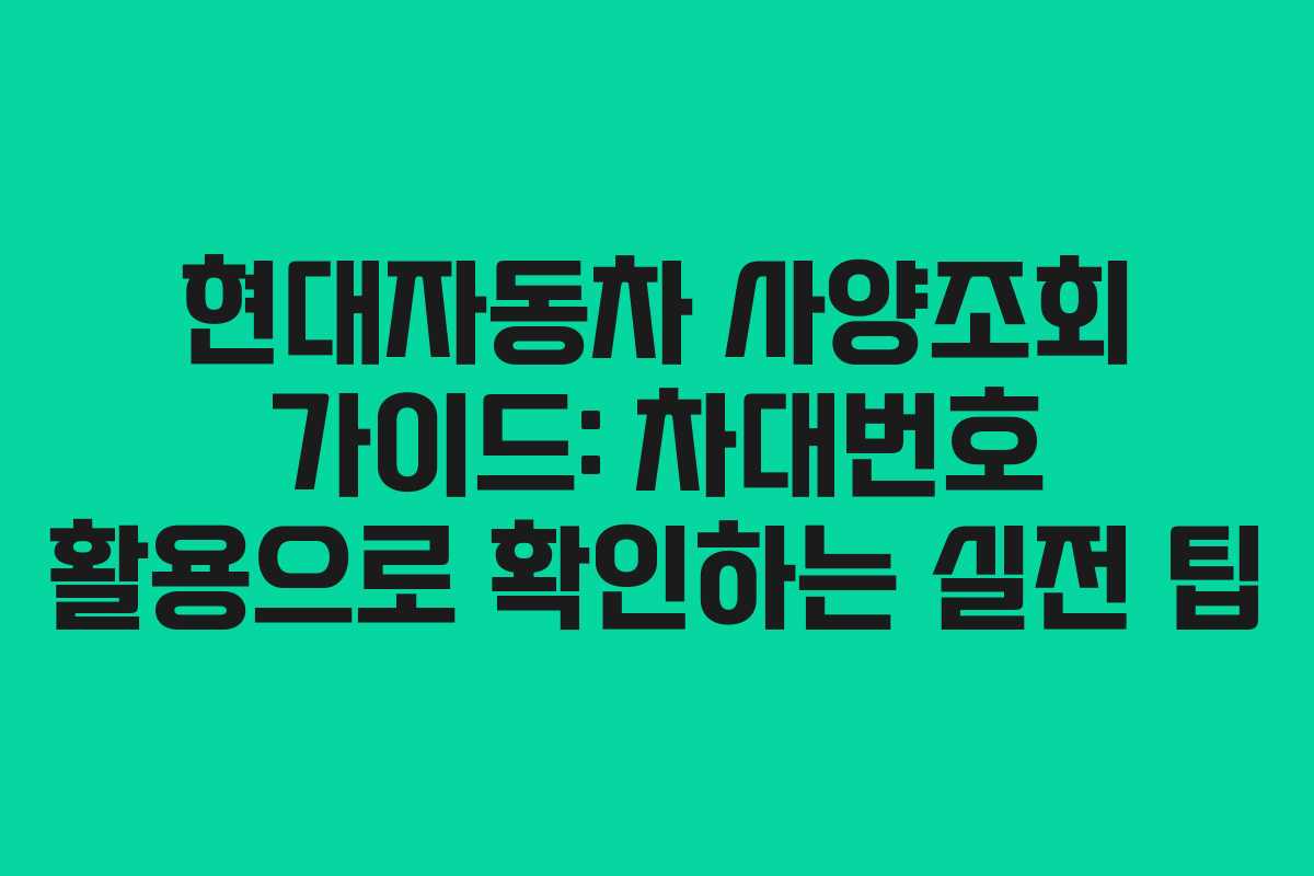 현대자동차 사양조회 가이드: 차대번호 활용으로 확인하는 실전 팁