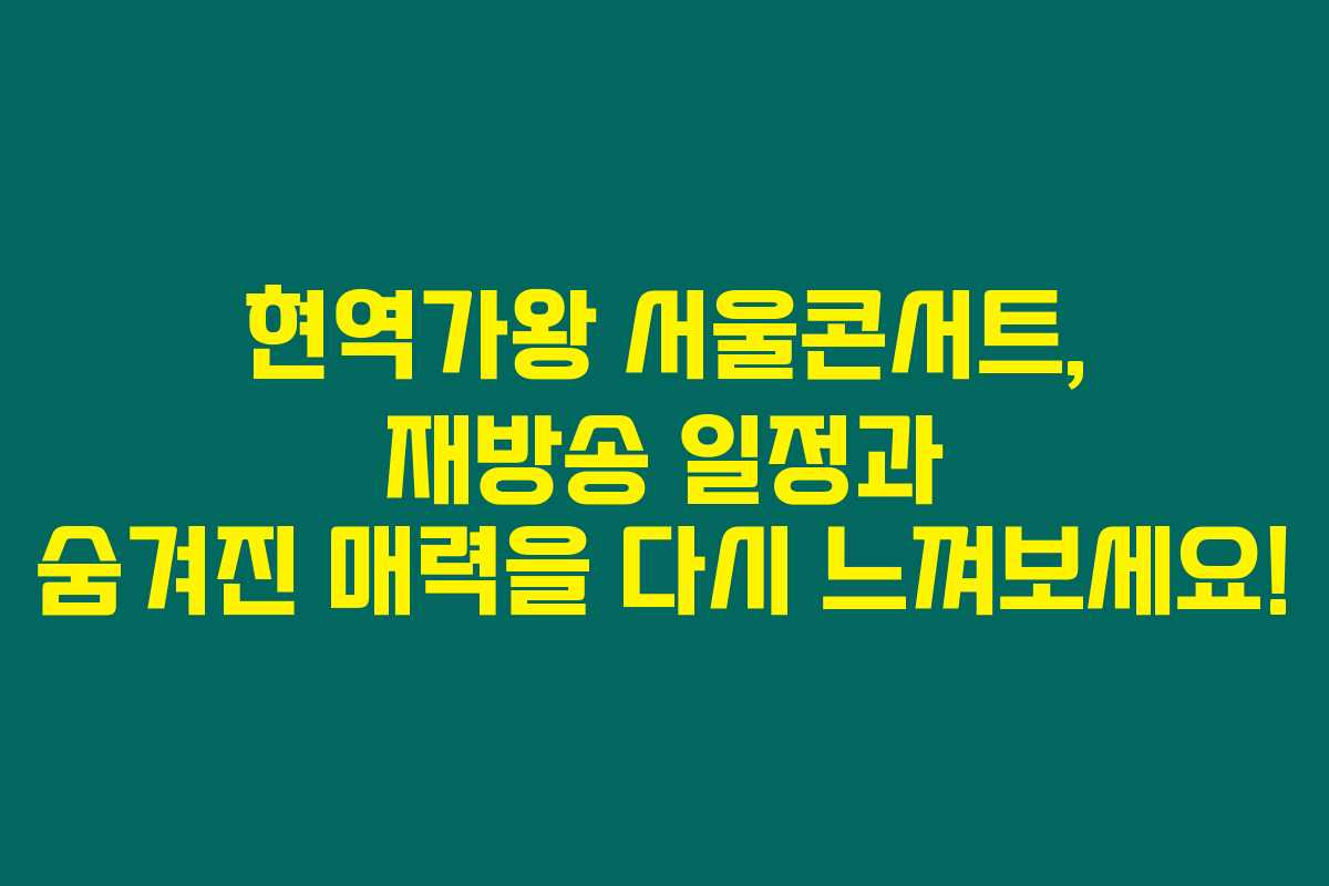 현역가왕 서울콘서트, 재방송 일정과 숨겨진 매력을 다시 느껴보세요!