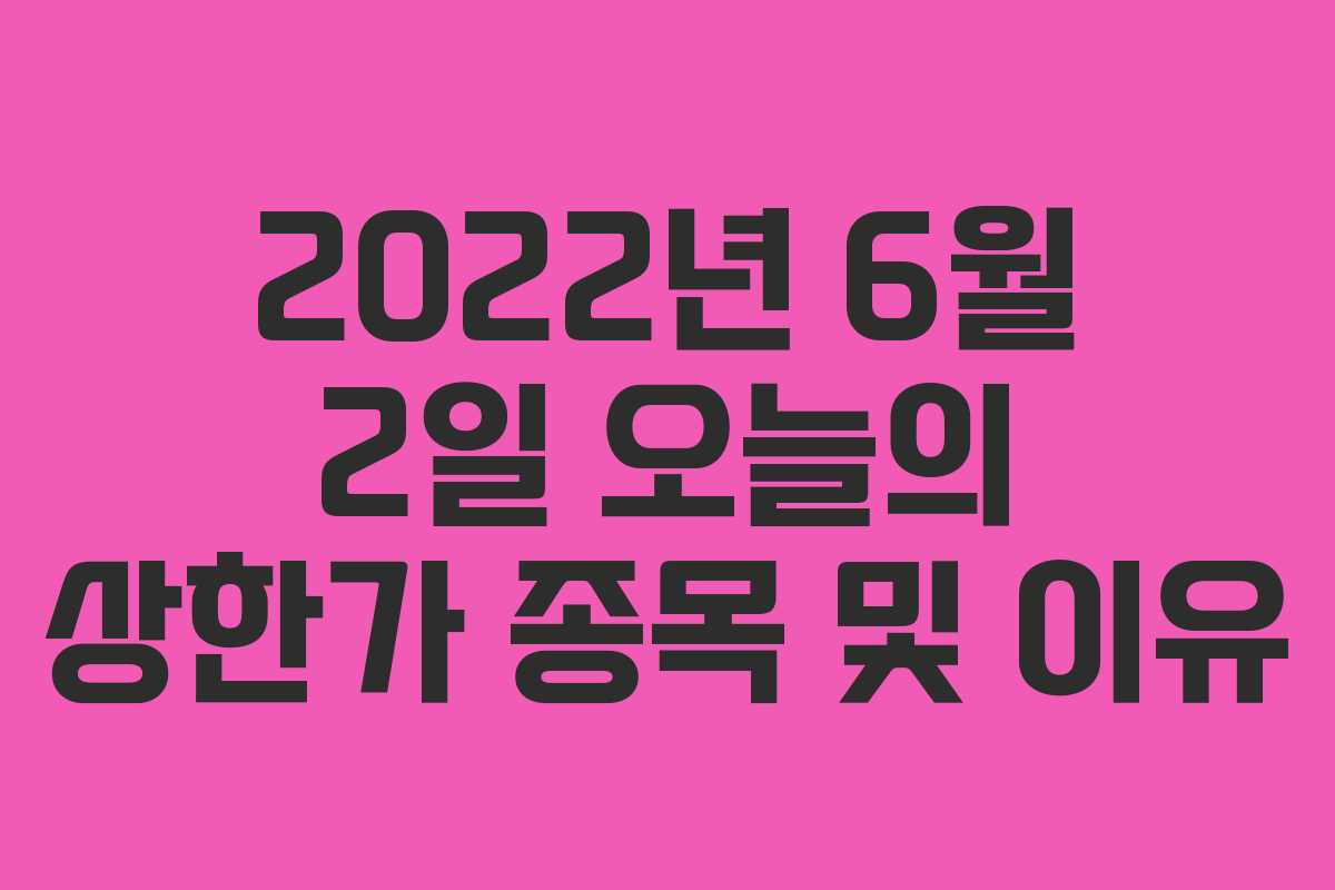 2022년 6월 2일, 주식 시장에서 상한가를 기록한 종목들과 그 배경에 대해 알아보겠습니다. 미국 증시의 하락세가 국내 시장에도 영향을 미쳤지만, 특정 종목은 긍정적인 소식으로 상한가를 기록했습니다.