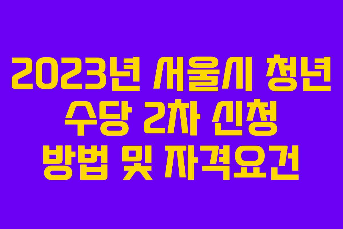 이번 2023년 서울시 청년 수당 2차 신청을 통해 많은 청년들이 혜택을 받을 수 있기를 바랍니다. 필요 사항을 잘 확인하시고 신청하시기 바랍니다.