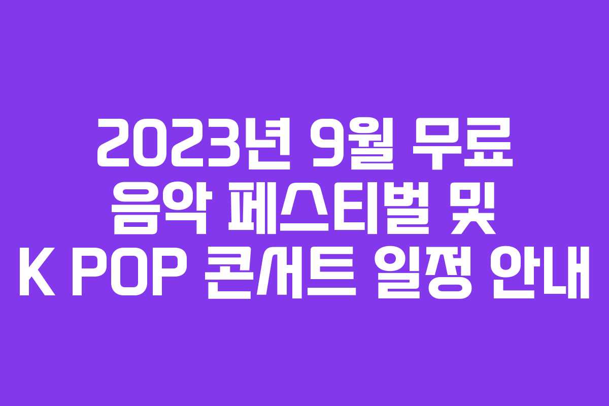 가을의 시작과 함께 다양한 야외 행사들이 예정되어 있습니다. 특히, 9월에는 무료로 즐길 수 있는 음악 페스티벌과 K-POP 콘서트가 다수 열려 많은 이들의 관심을 받고 있습니다. 이번 포스팅에서는 9월에 진행되는 주요 행사들을 소개하겠습니다.