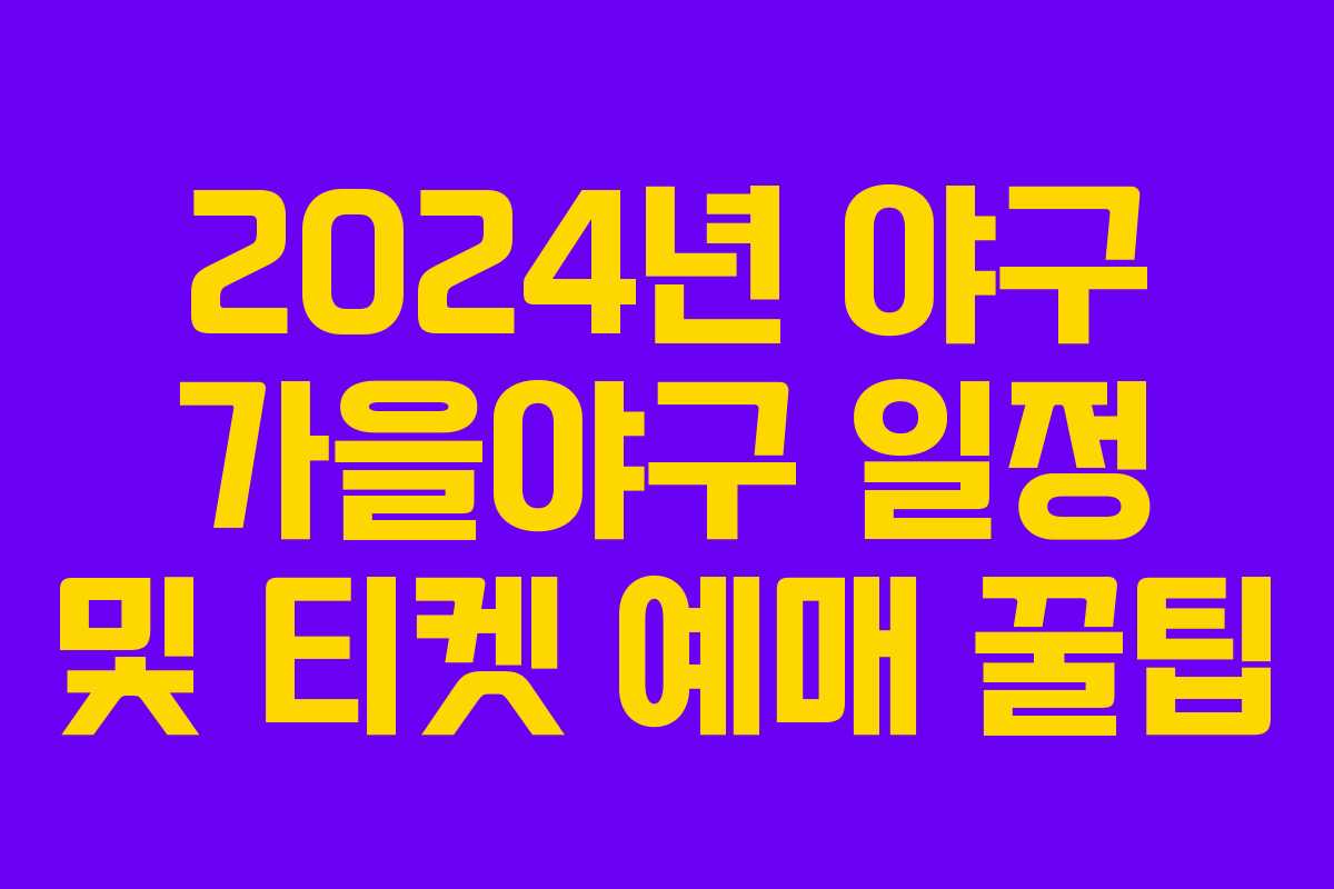 2024년 야구 가을야구 일정 및 티켓 예매 꿀팁