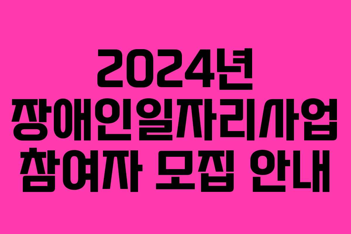 2024년 장애인일자리사업은 취업 취약계층의 사회 참여 기회를 확대하고 소득 증진을 목표로 하고 있습니다. 많은 관심과 참여를 바랍니다!