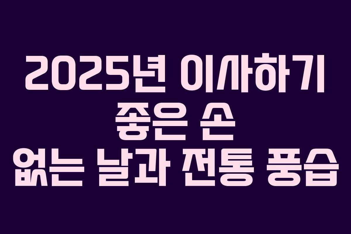 2025년 이사 계획을 세우고 계신가요? 이사하기 좋은 날인 손 없는 날과 이사 시 지켜야 할 전통 풍습에 대해 알아보겠습니다.