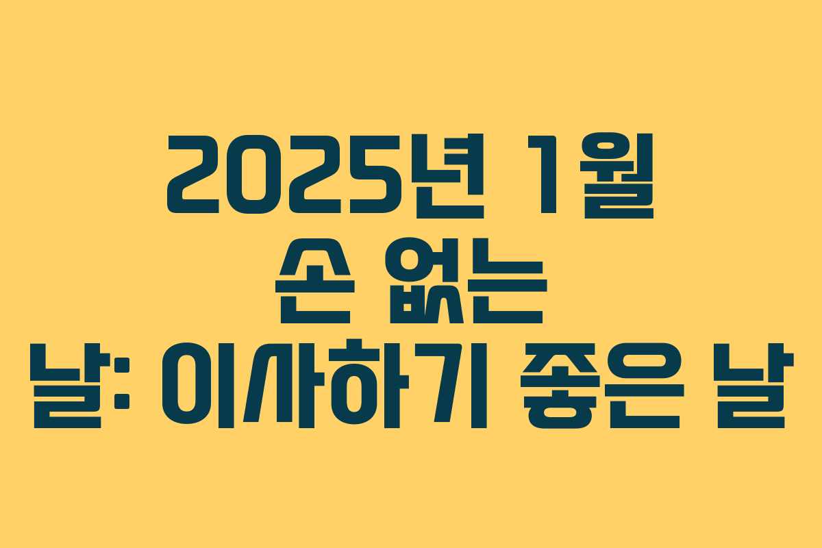 이와 같은 정보들을 바탕으로 2025년 1월의 손 없는 날을 잘 활용하여 보다 원활한 이사를 계획하시기 바랍니다.