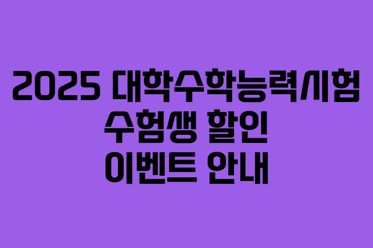 2024년 11월 14일부터 시작되는 2025 대학수학능력시험을 맞아 수험생 여러분을 위한 특별한 할인 이벤트가 준비되었습니다. 롯데월드와 에버랜드에서는 수험생들에게 다양한 혜택을 제공하니 꼭 확인하시기 바랍니다.