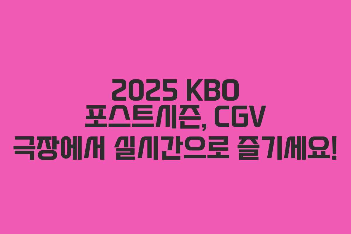 2025 KBO 포스트시즌을 CGV 극장에서 뜨거운 응원과 함께 즐기세요! 이 기회를 놓치지 마시고, 극장에서 울려 퍼지는 함성과 함께 야구의 열기를 느껴보세요!