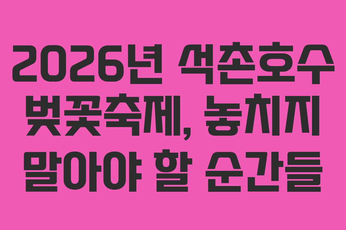 2026년 석촌호수 벚꽃축제, 놓치지 말아야 할 순간들
