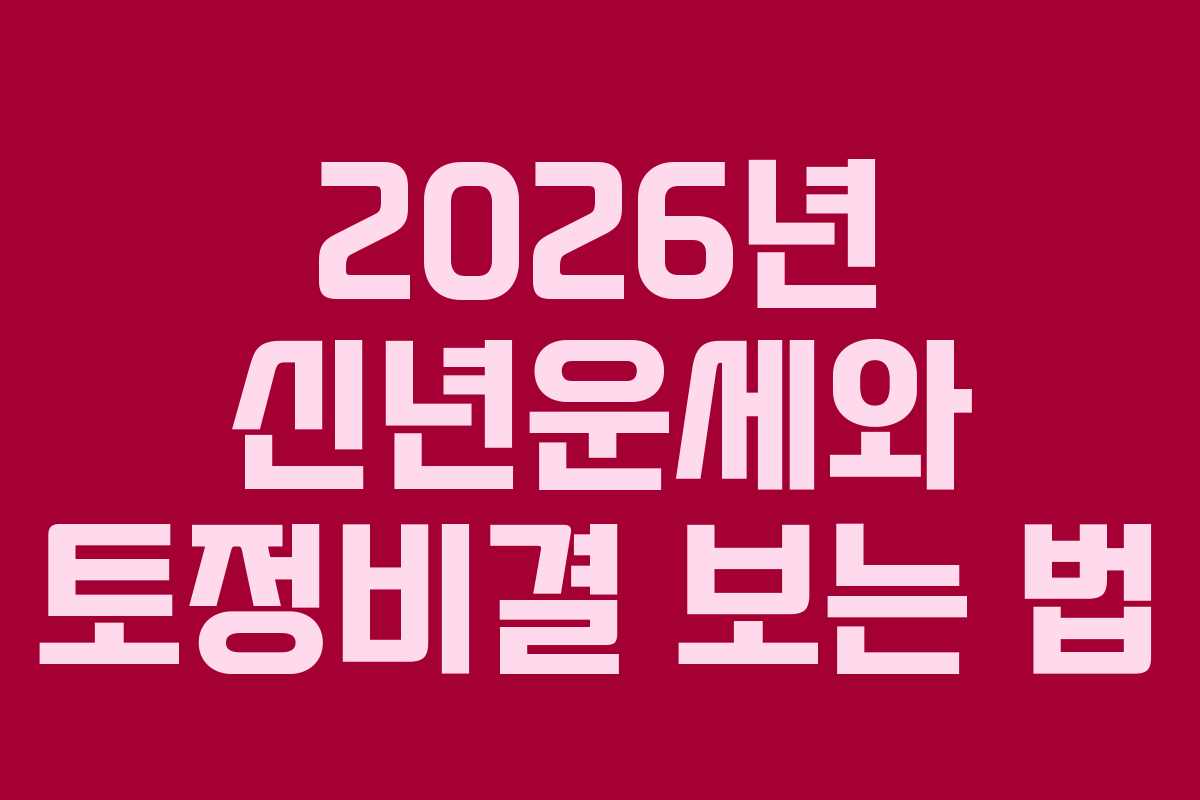 2026년이 다가오면서 많은 사람들이 신년운세와 토정비결에 대해 궁금해하고 있습니다. 이번 글에서는 신년운세를 보는 방법과 유용한 사이트 정보를 공유하겠습니다.