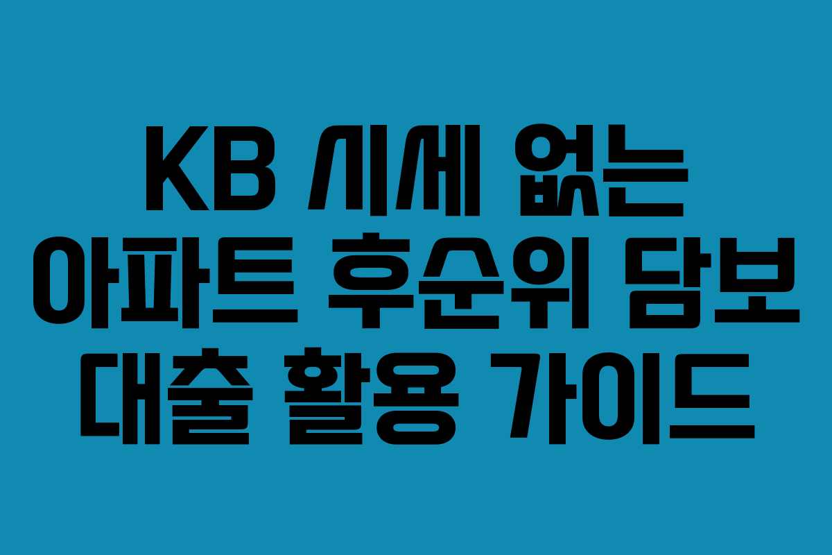 KB 시세가 없는 아파트를 담보로 후순위 대출을 고려할 때, 여러 가지 중요한 사항을 이해하는 것이 필요합니다. 이 글에서는 시세가 없는 아파트의 담보 대출 한도 확인 방법과 감정가 비교의 중요성을 상세히 설명하겠습니다.