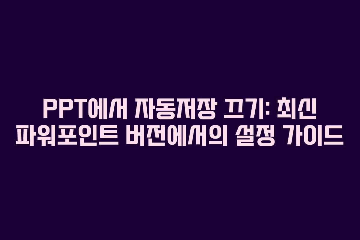 아래를 읽어보시면 PPT에서 자동저장을 비활성화하는 구체적 방법과 주의점을 빠르게 확인하실 수 있습니다.