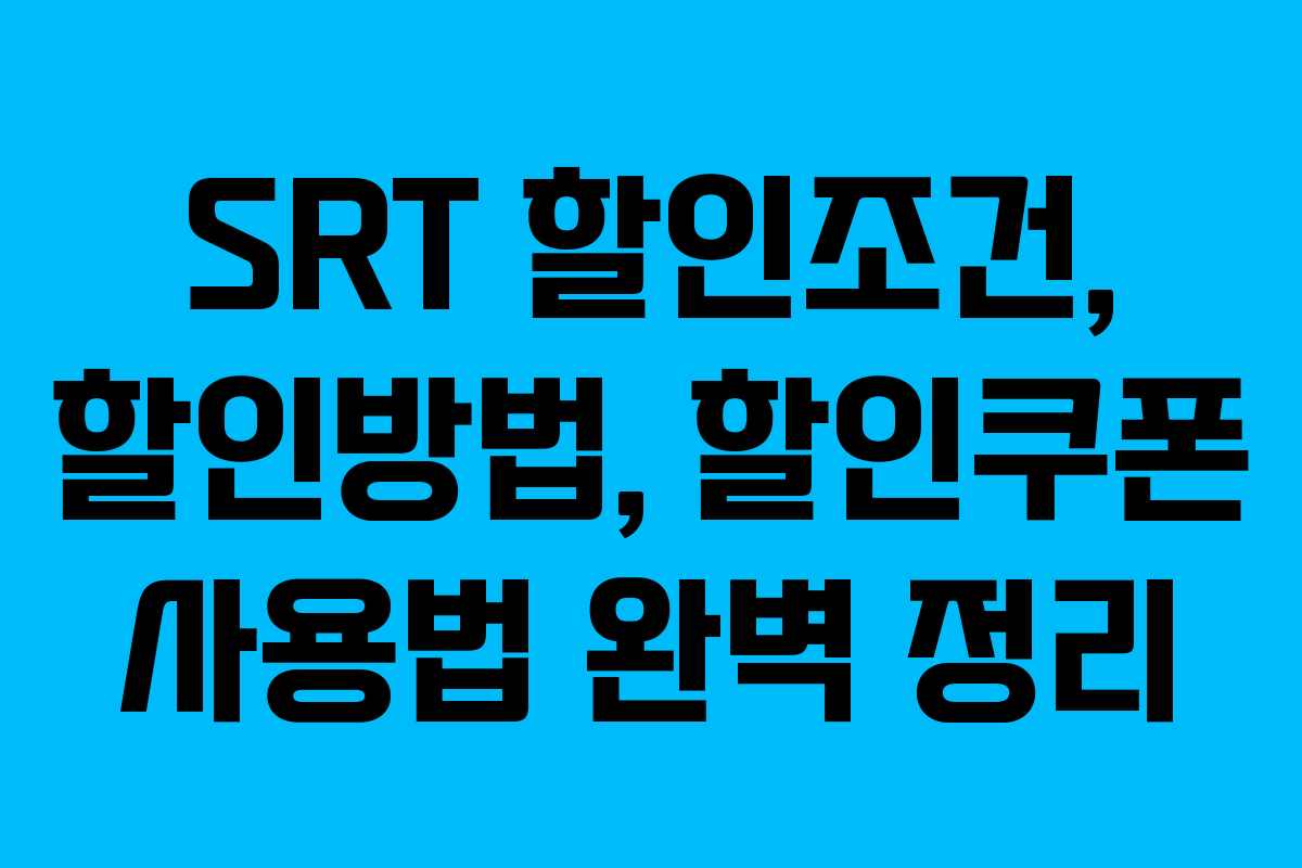 SRT의 할인조건, 할인방법, 할인쿠폰 사용법에 대해 알아보았습니다. 가장 최신 정보를 확인하려면 SRT 공식 홈페이지나 예매 앱을 참고하시기 바랍니다.